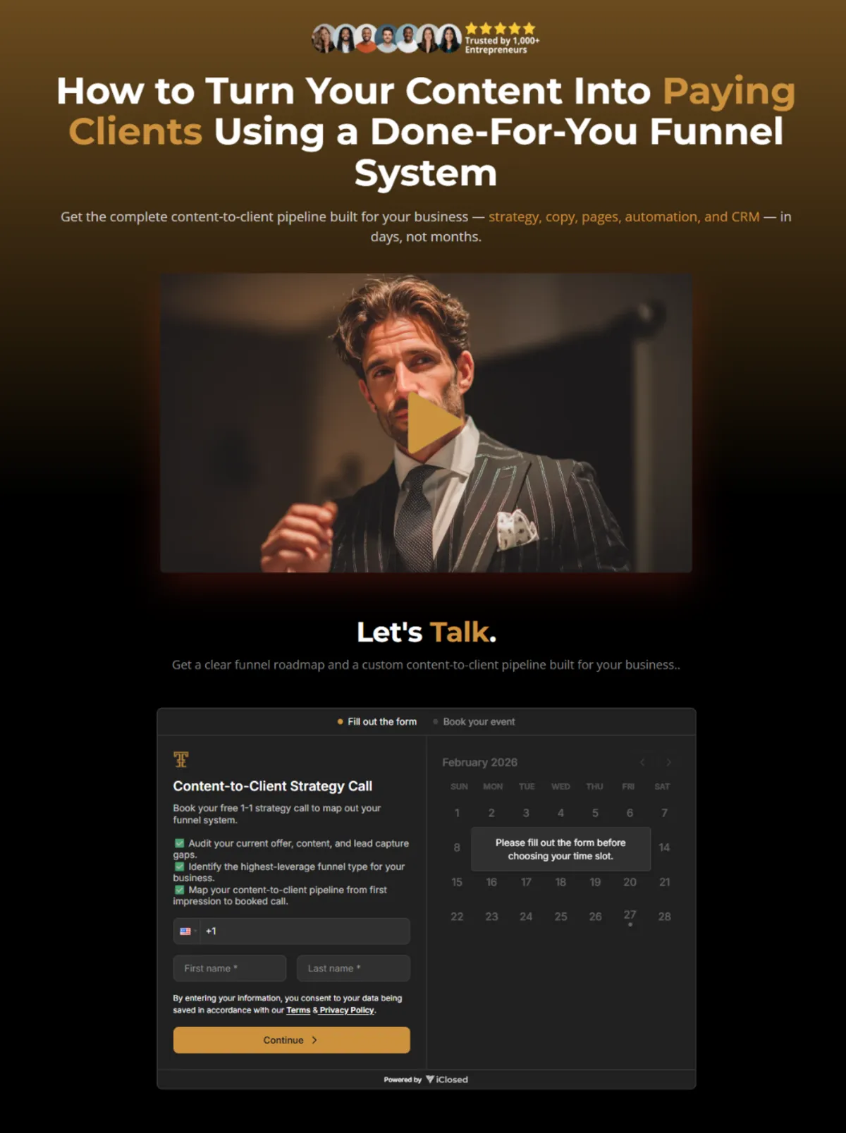 Get a clear funnel roadmap and a custom content-to-client pipeline built for your business..